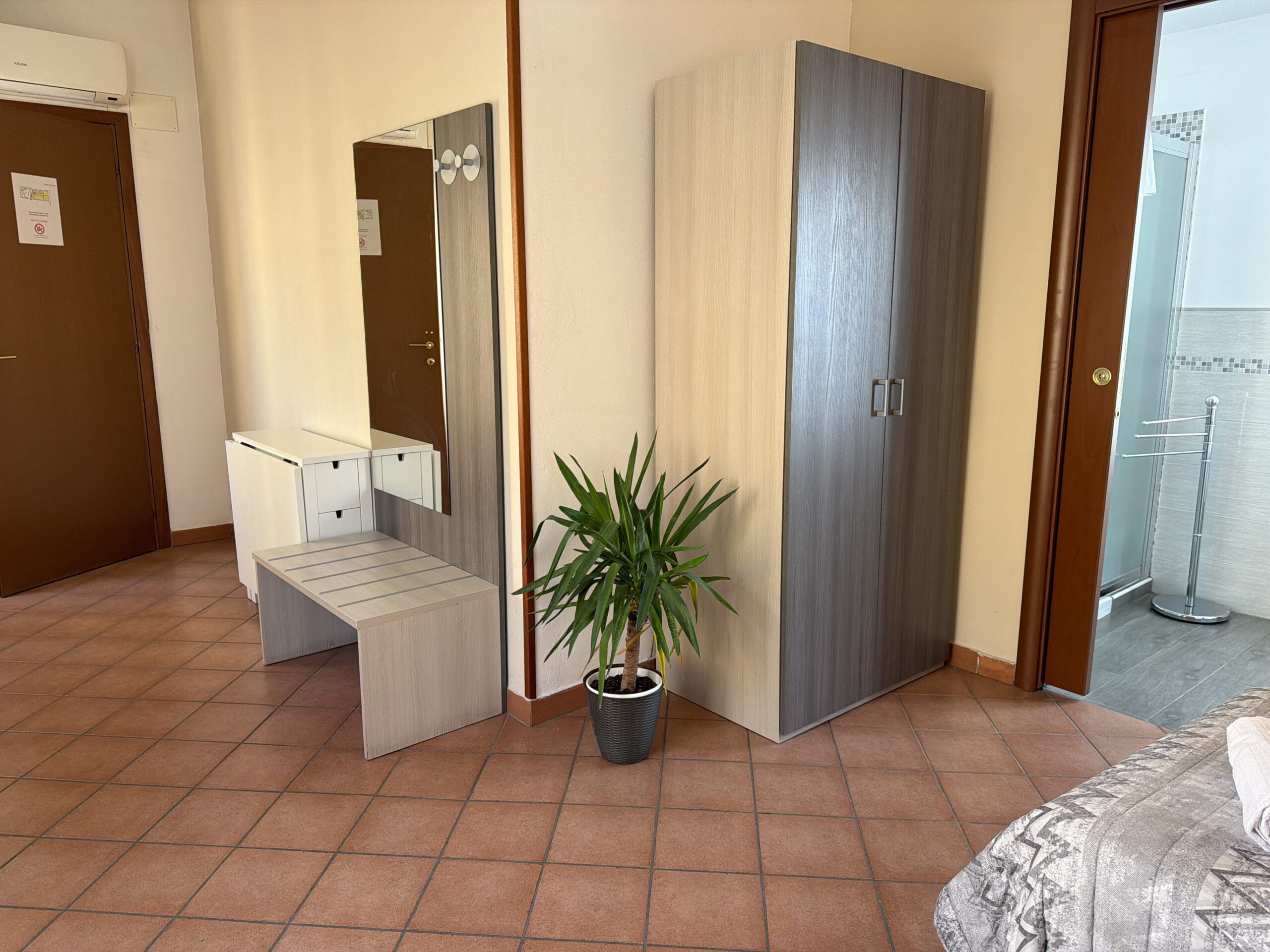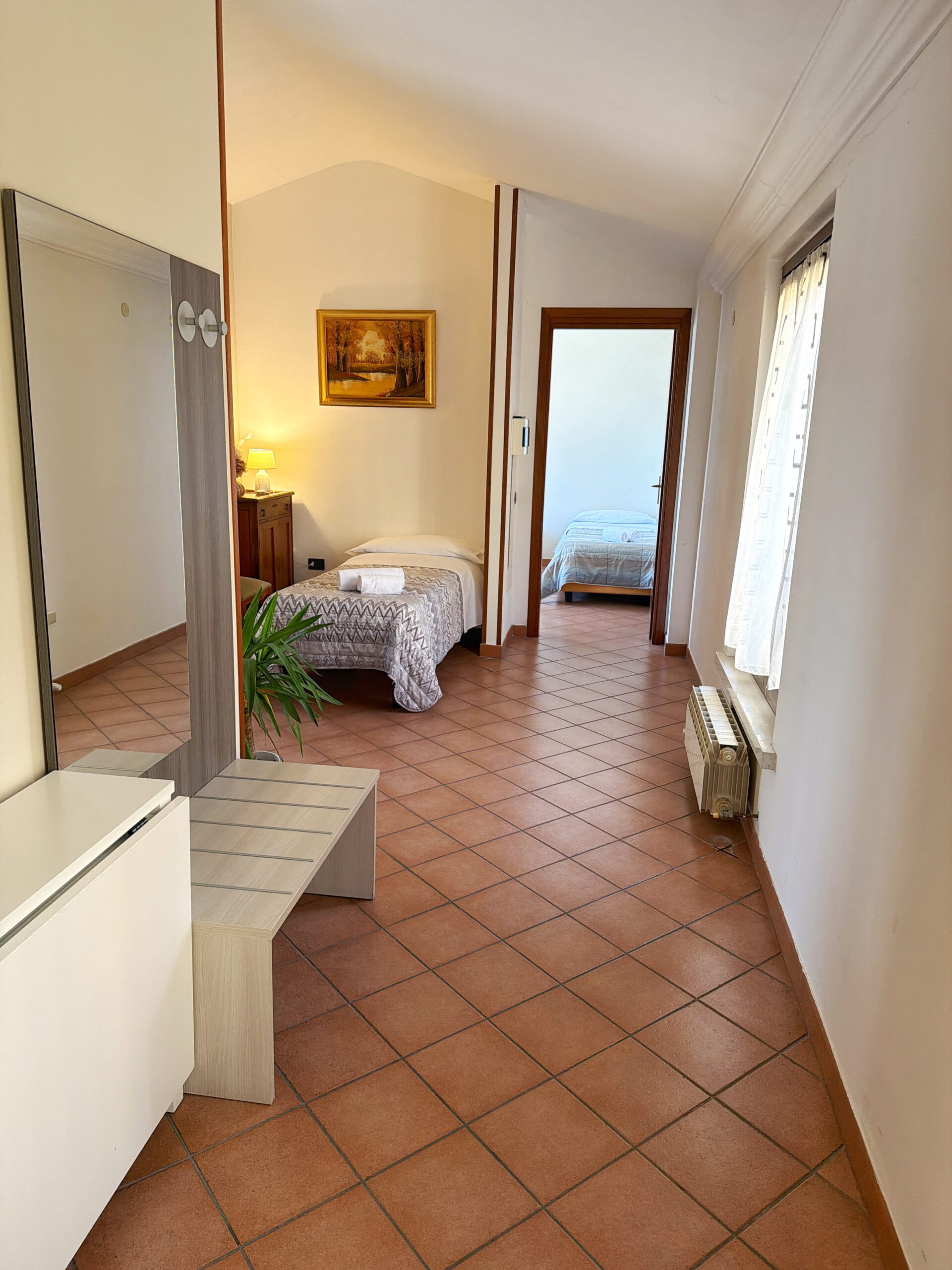 All’ingresso si accede alla prima stanza, uno spazio accogliente arredato con letto singolo. Sulla sinistra dell’ingresso si trova il bagno privato con ampia doccia.