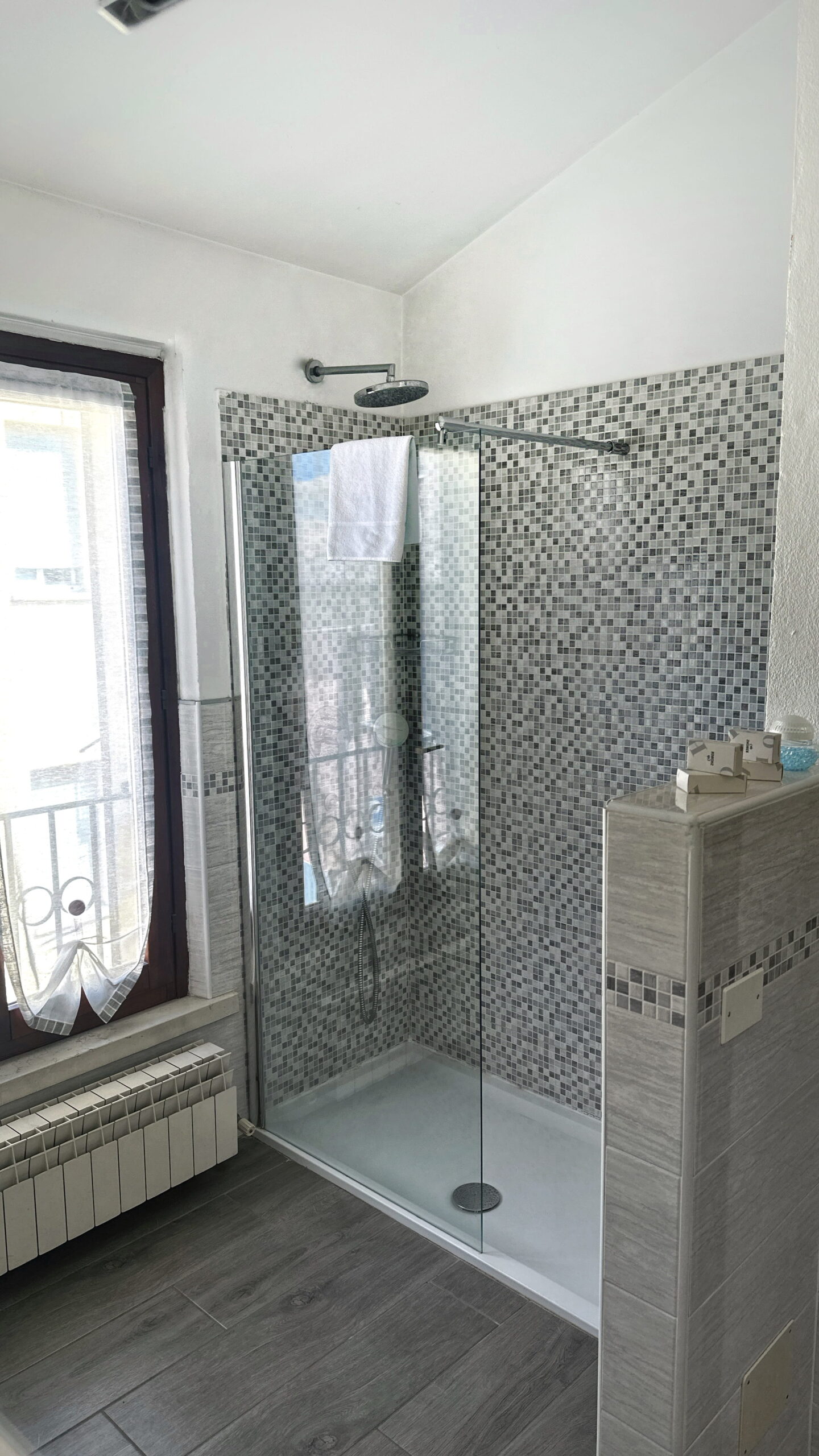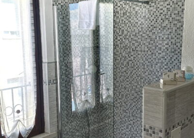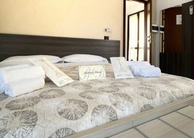 La camera dispone di letto matrimoniale con letti divisibili su richiesta e di bagno privato in camera con ampia doccia, offrendo un ambiente confortevole e funzionale per il soggiorno.